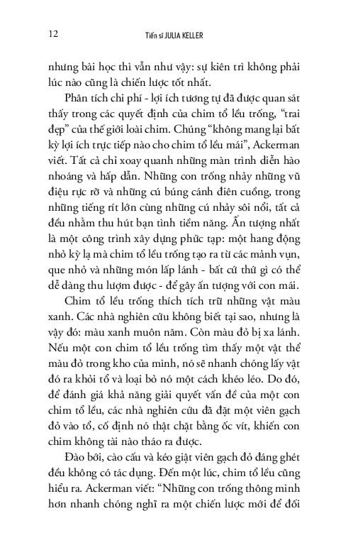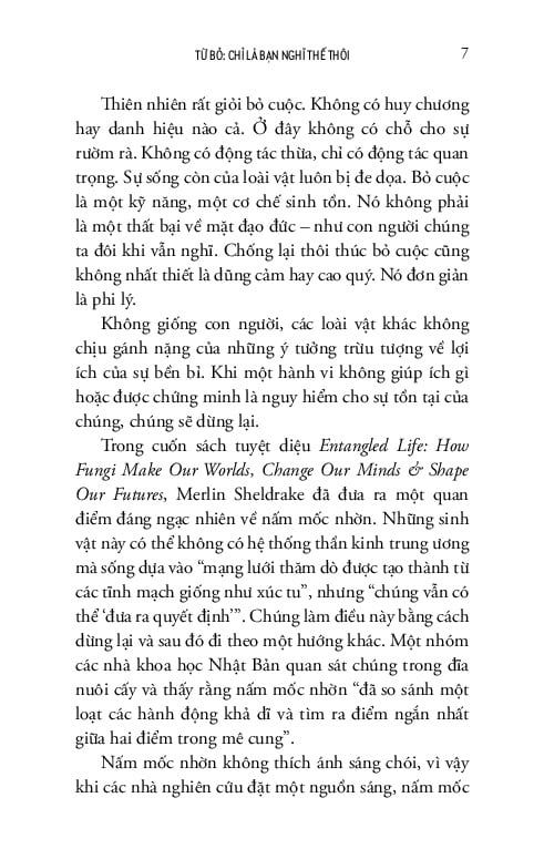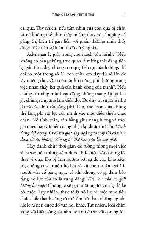 Đào sâu vào những yếu tố khoa học thần kinh và những thông điệp văn hóa vẫn khiến chúng ta miễn cưỡng trước việc bỏ cuộc, Keller đã xóa bỏ những quan điểm hoang đường xoay quanh cái gọi là “bền gan vững chí” theo đuổi một mục tiêu nào đó. Bền gan không phải lúc nào cũng mang lại kết quả xứng đáng, và bỏ cuộc có thể là một hành động trân trọng bản thân ít ai nghĩ tới.