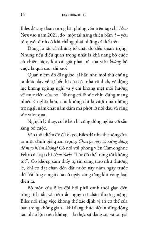 Simone Biles đã bỏ thi Olympics. Hoàng tử Harry và Meghan Markle rời bỏ Hoàng gia Anh. Hàng triệu người đã bỏ việc để tìm kiếm hạnh phúc và tự định nghĩa thành công. Đó phải chăng là một sai lầm? Julia Keller - một nhà báo đoạt giải Pulitzer - không nghĩ như vậy. Thậm chí, rất có thể việc bỏ cuộc sẽ cứu vãn cuộc đời bạn.