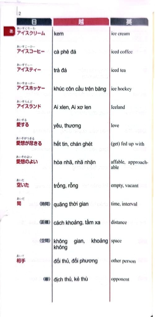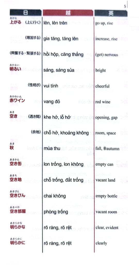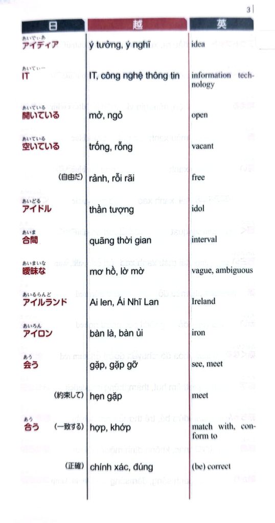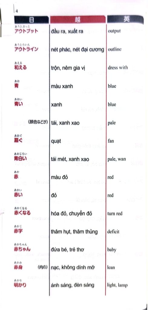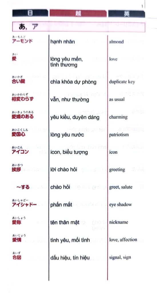 Từ điển Nhật Việt Anh, tuyển chọn các từ vựng thông dụng hàng ngày.