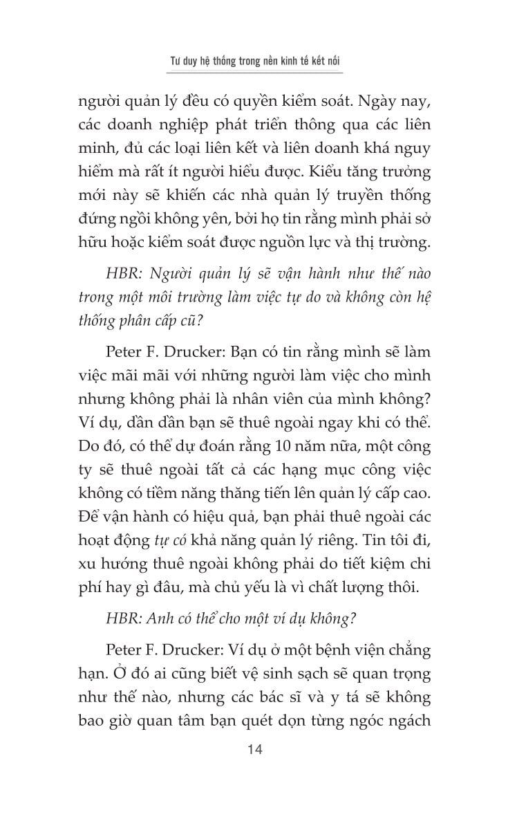 Drucker cho rằng nhà quản lý tương lai không còn là người chỉ huy trong một hệ thống cấp bậc, mà là người “kết nối và định hướng” trong mạng lưới liên minh phức tạp. Khi quyền lực không đến từ việc sở hữu nguồn lực, mà từ khả năng sử dụng thông tin và tạo ảnh hưởng, tư duy hệ thống trở thành kỹ năng thiết yếu giúp tổ chức vận hành linh hoạt, phản ứng kịp thời và duy trì lợi thế cạnh tranh.