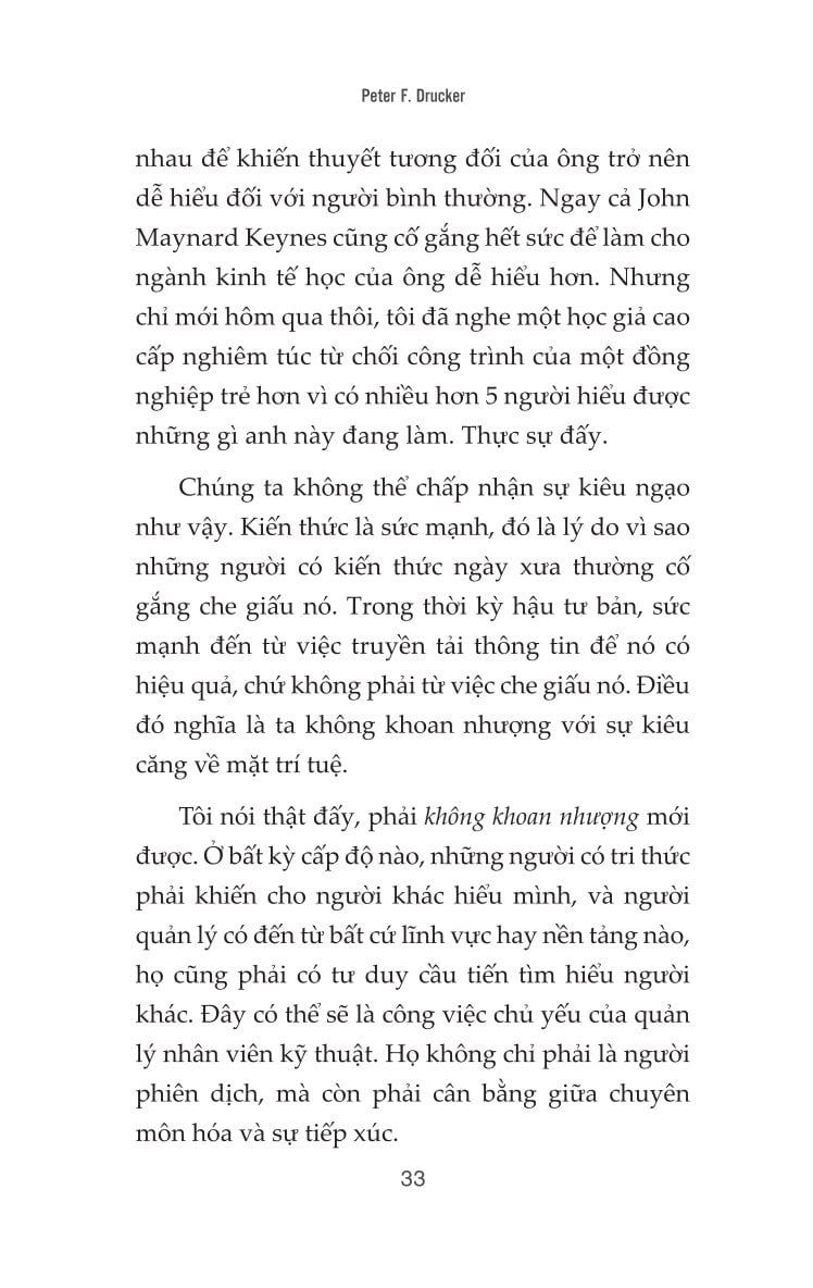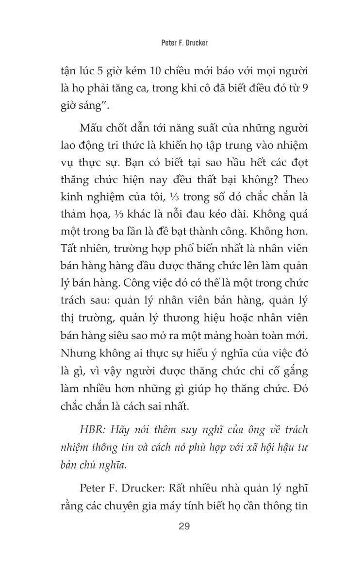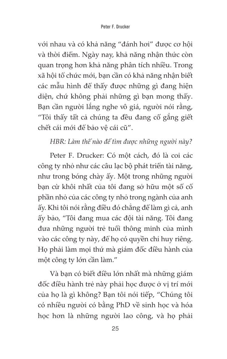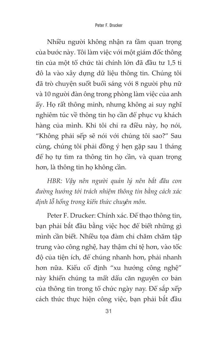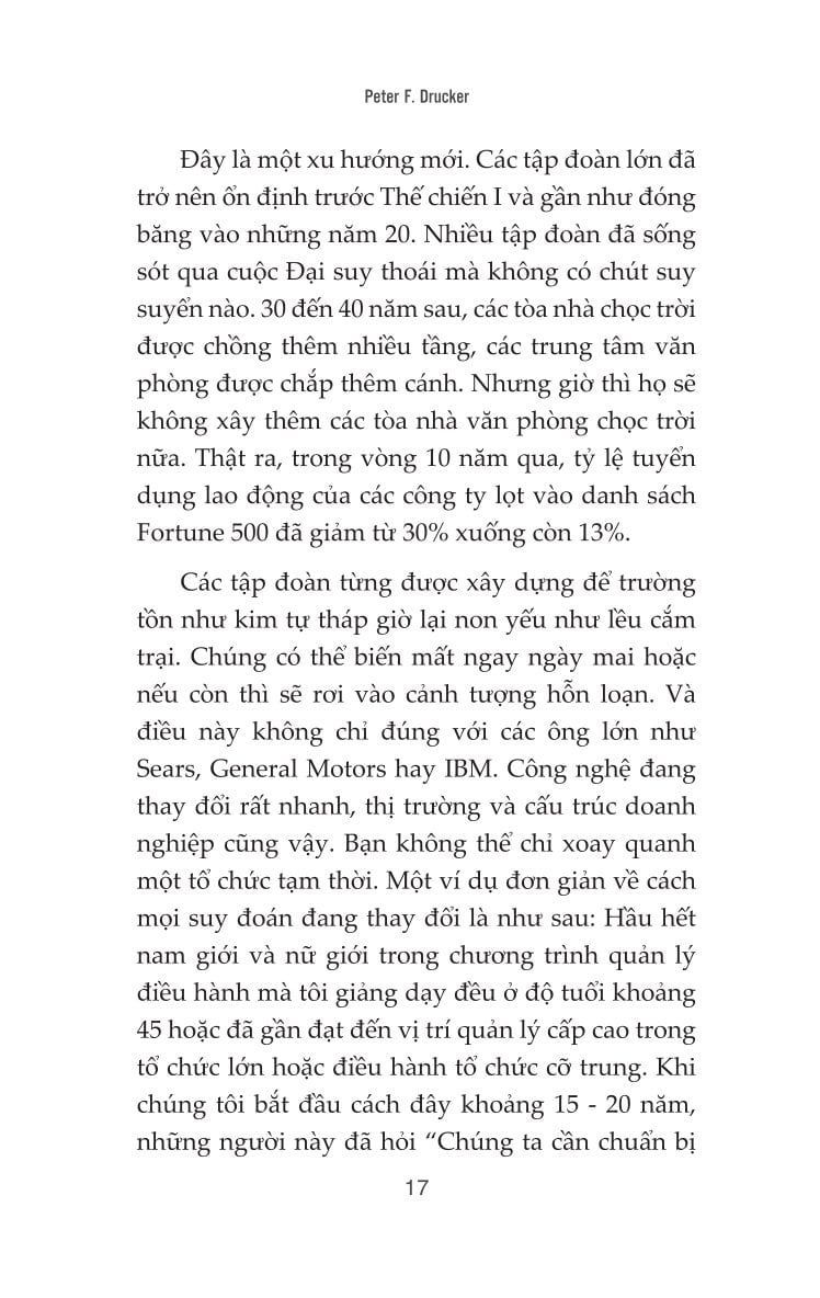 Với lối viết hàm súc, chặt chẽ và thực tế, Peter Drucker không chỉ nêu vấn đề mà còn đưa ra những khung tư duy và giải pháp đột phá để nhà quản trị có thể thích ứng trong một thế giới không ngừng thay đổi. Cuốn sách là kim chỉ nam cho những ai đang giữ vai trò lãnh đạo, hoạch định chiến lược, và muốn duy trì sự hiệu quả trong thời đại hậu công nghiệp - nơi tri thức là tài sản lớn nhất và “liên kết là năng lực cốt lõi”.