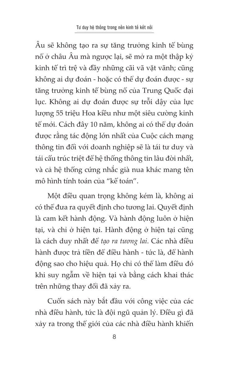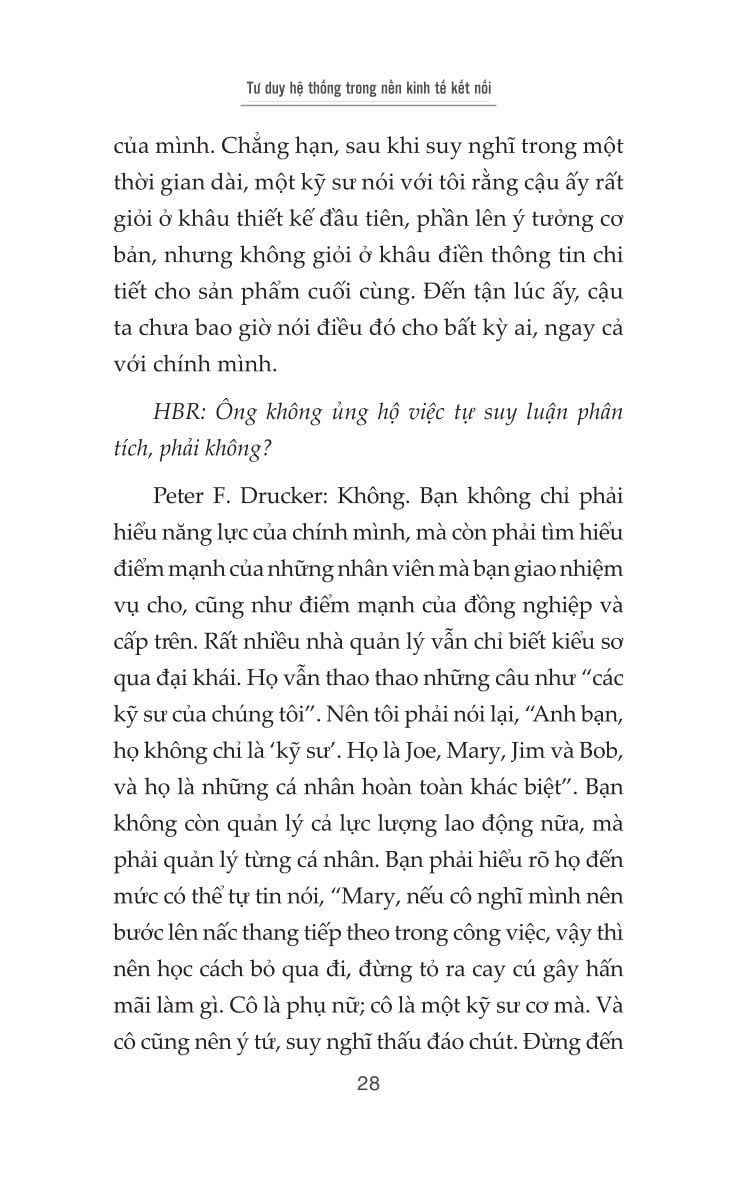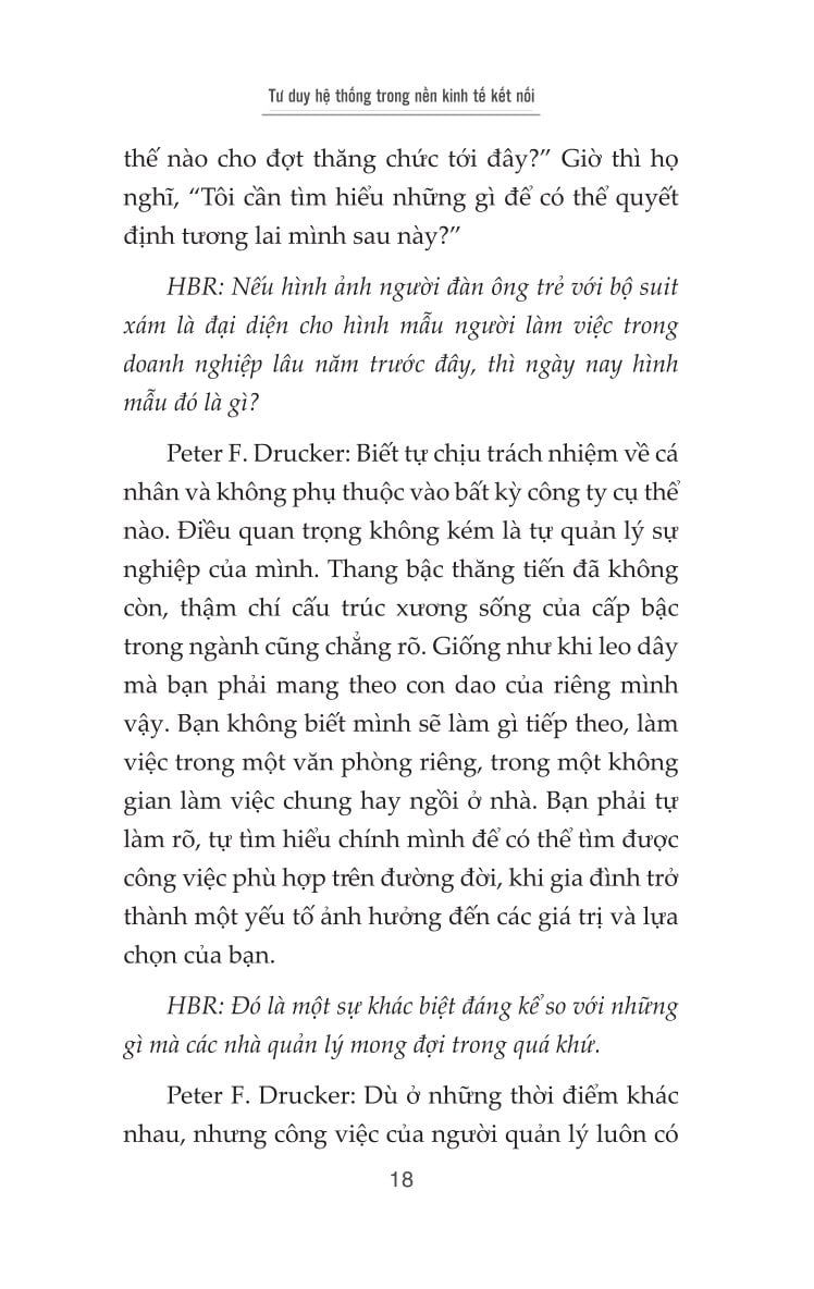 Tư duy hệ thống trong nền kinh tế kết nối là một tuyển tập sâu sắc các bài tiểu luận và phỏng vấn của Peter F. Drucker - nhà tư tưởng vĩ đại và người đặt nền móng cho ngành quản trị hiện đại. Cuốn sách không chỉ mang tính học thuật mà còn giàu giá trị thực tiễn, đặc biệt trong bối cảnh các doanh nghiệp đang đứng trước áp lực tái cấu trúc, chuyển đổi số và sự lên ngôi của nền kinh tế tri thức.