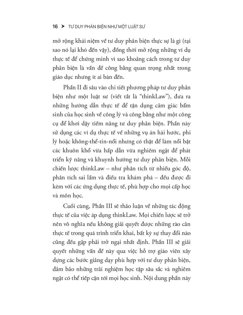 Đây là phần cốt lõi của sách, giới thiệu phương pháp giáo dục mang tên ThinkLaw – mô hình giúp học sinh tư duy như một luật sư thông qua các vụ án có thật.