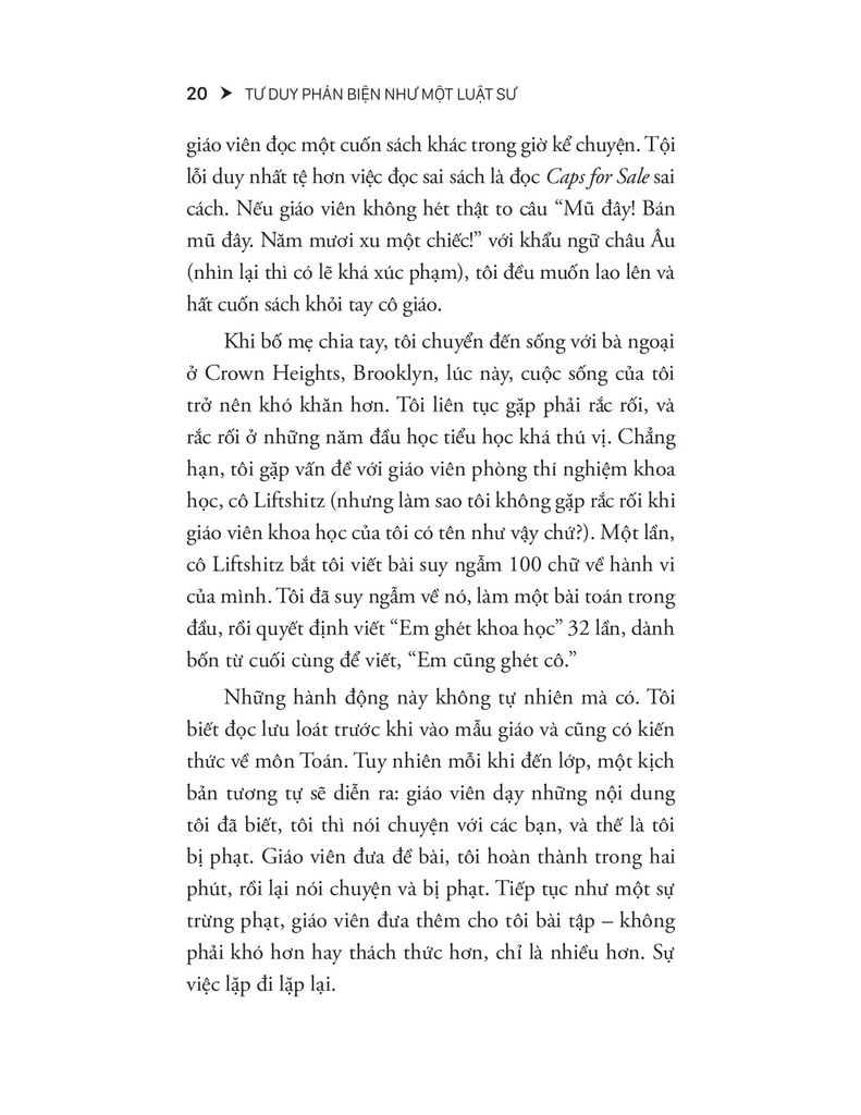 Tư Duy Phản Biện Như Một Luật Sư là cuốn sách tiên phong trả lời câu hỏi ấy bằng một phương pháp thiết thực: mô phỏng phiên tòa trong lớp học. Thay vì chỉ học lý thuyết, học sinh sẽ tranh luận như những luật sư – đặt vấn đề, lập luận, chất vấn và phản biện. Với cách tiếp cận này, tư duy phản biện không còn là lý tưởng xa vời mà trở thành thói quen học tập hàng ngày.