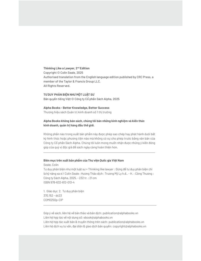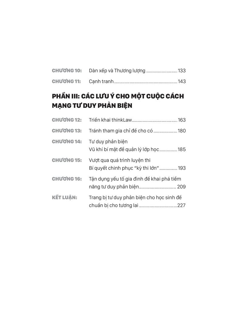 Tư duy phản biện không thể lan tỏa nếu chỉ dừng ở ý tưởng. Phần cuối cuốn sách giúp giáo viên đối mặt với các rào cản thực tiễn: thời gian, chương trình nặng nề, học sinh không đồng đều… Colin Seale đưa ra các giải pháp cụ thể để tích hợp tư duy phản biện vào bài học mà không cần thay đổi quá nhiều về tài nguyên hay công nghệ. Đây là phần rất thực dụng, giúp giáo viên từng bước xây dựng lớp học giàu tranh luận, phản biện và sáng tạo.