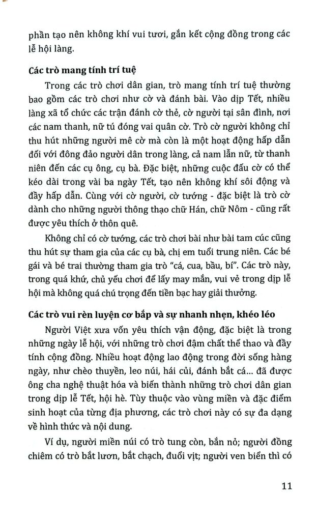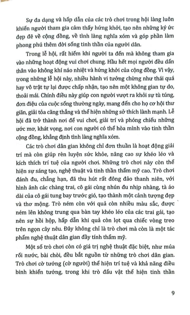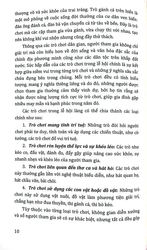 Tìm hiểu những trò chơi dân gian tiêu biểu, mang đậm bản sắc dân tộc, vốn được lưu truyền và tổ chức trong các lễ hội làng quê Việt Nam xưa và nay, thể hiện đời sống tinh thần của các cộng đồng dân cư ở từng vùng miền, qua đó góp phần củng cố tinh thần đoàn kết, phát huy tình làng nghĩa xóm và làm giàu thêm đời sống văn hóa cộng đồng.