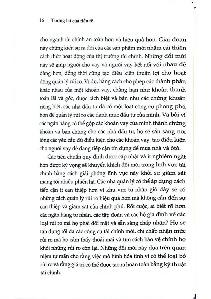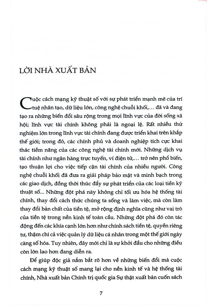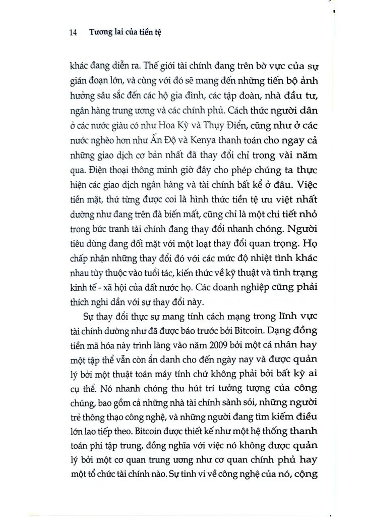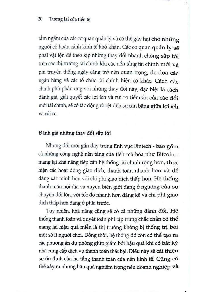 Tương Lai Của Tiền Tệ - Cuộc Cách Mạng Kỹ Thuật Số Đang Biến Đổi Tiền Tệ Và Tài Chính Như Thế Nào - Eswar S. Prasad (CTQG)Cuốn sách cung cấp cái nhìn tổng quan về sự trỗi dậy của các đồng tiền kỹ thuật số, cùng với công nghệ tài chính và công nghệ chuỗi khối – những yếu tố đang thách thức và tái định hình hệ thống tài chính truyền thống. Đồng thời, làm rõ sự phát triển của tiền kỹ thuật số của ngân hàng trung ương (CBDC), được coi là một bước tiến lớn trong việc cải thiện hệ thống thanh toán và thúc đẩy tài chính toàn diện. Qua đó, không chỉ phác họa bức tranh tương lai của tiền tệ và những rủi ro tiềm ẩn từ các công nghệ này, mà còn đặt ra câu hỏi về các chính sách cần phải điều chỉnh để bảo đảm rằng những tiến độ công nghệ này sẽ mang lại lợi ích bền vững cho cả nền kinh tế và người tiêu dùng
