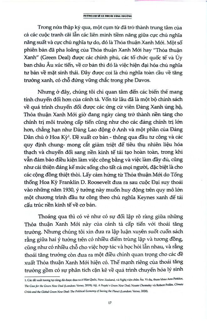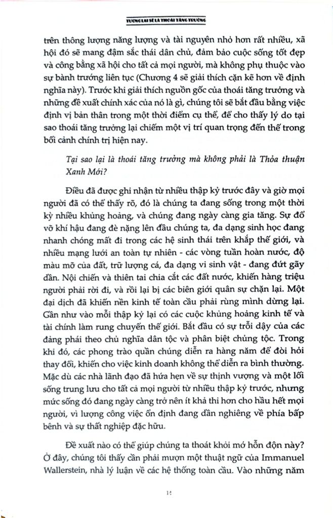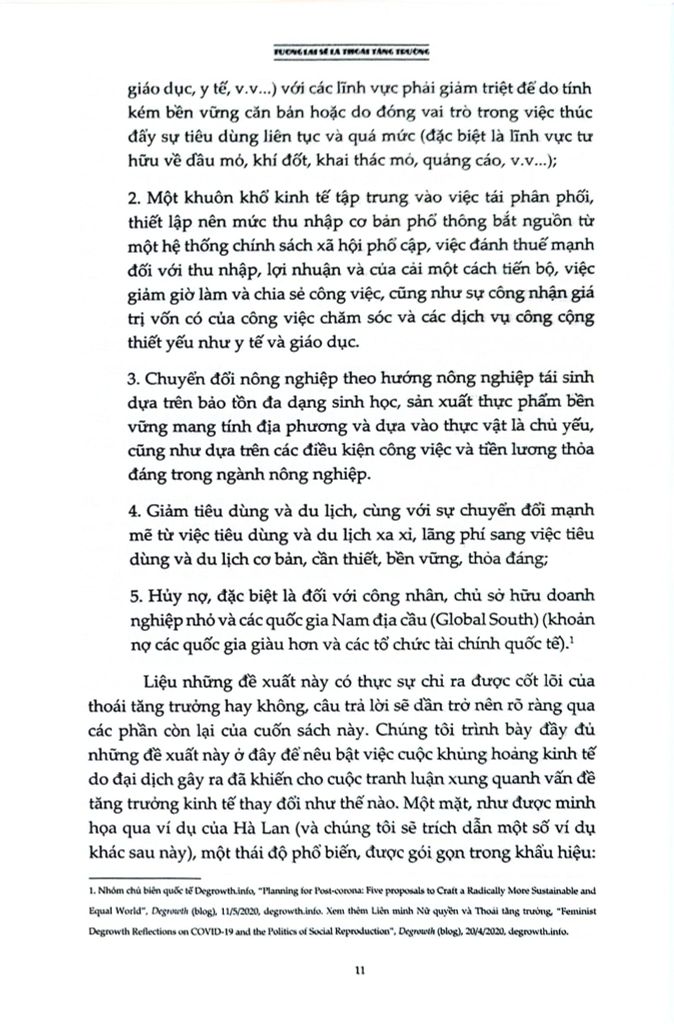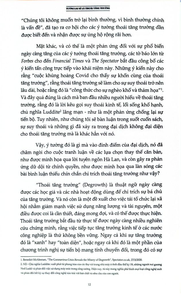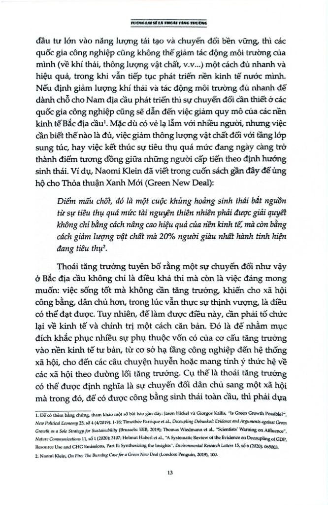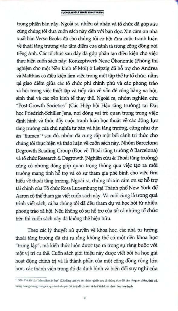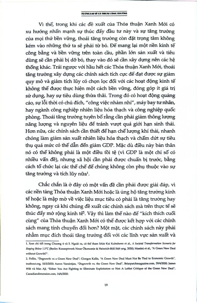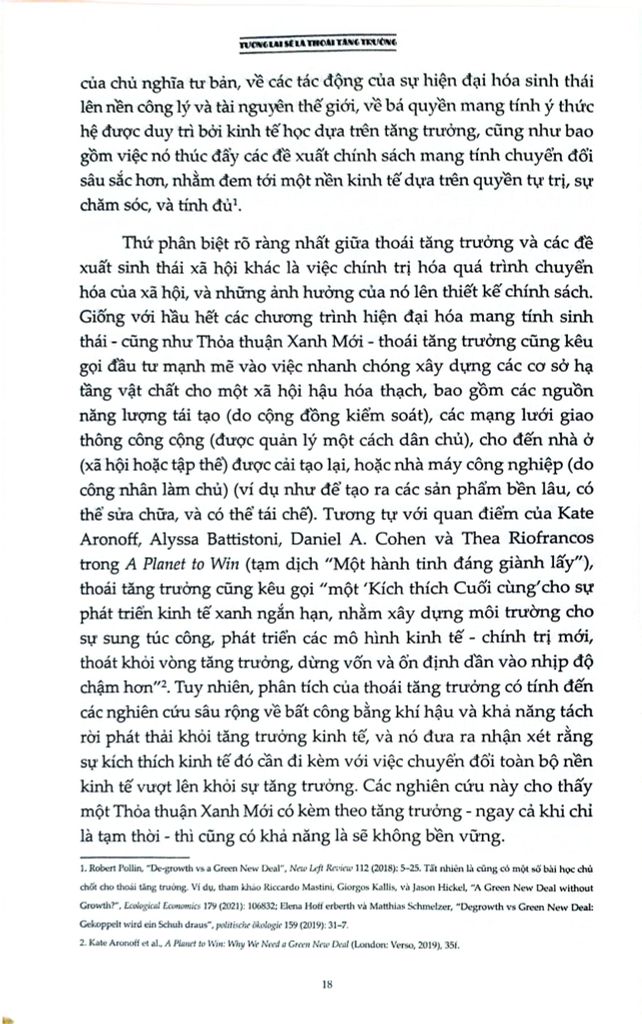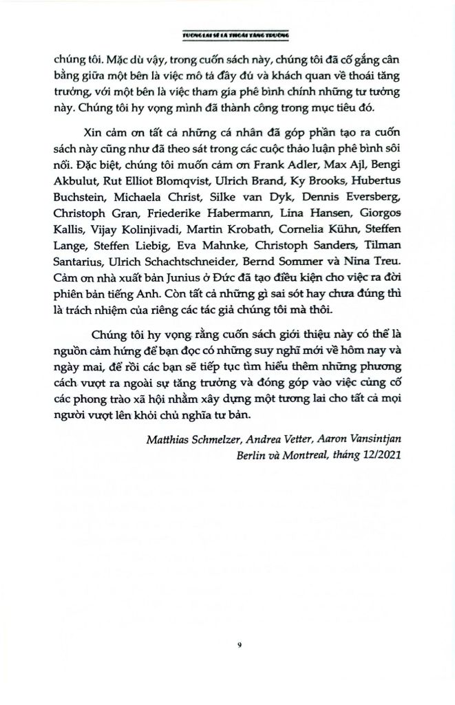 Là một cuốn sách đầy tham vọng, Tương lai sẽ là thoái tăng trưởng: Hướng dẫn tới một thế giới vượt ra khỏi chủ nghĩa tư bản cung cấp một cái nhìn viễn kiến cho chủ nghĩa hậu tư bản nằm ngoài tăng trưởng, đặt ra lộ trình hướng tới một tương lai không có tăng trưởng thông qua các chính sách dân chủ hóa nền kinh tế, một “nowtopia” cho chúng ta không gian tự do để thử nghiệm và các phong trào chống bá quyền giúp phá vỡ logic của tăng trưởng. Cuốn sách là một sổ tay cần thiết cho tất cả những ai quan tâm đến việc vạch ra một con đường vượt qua các cuộc khủng hoảng hiện tại.