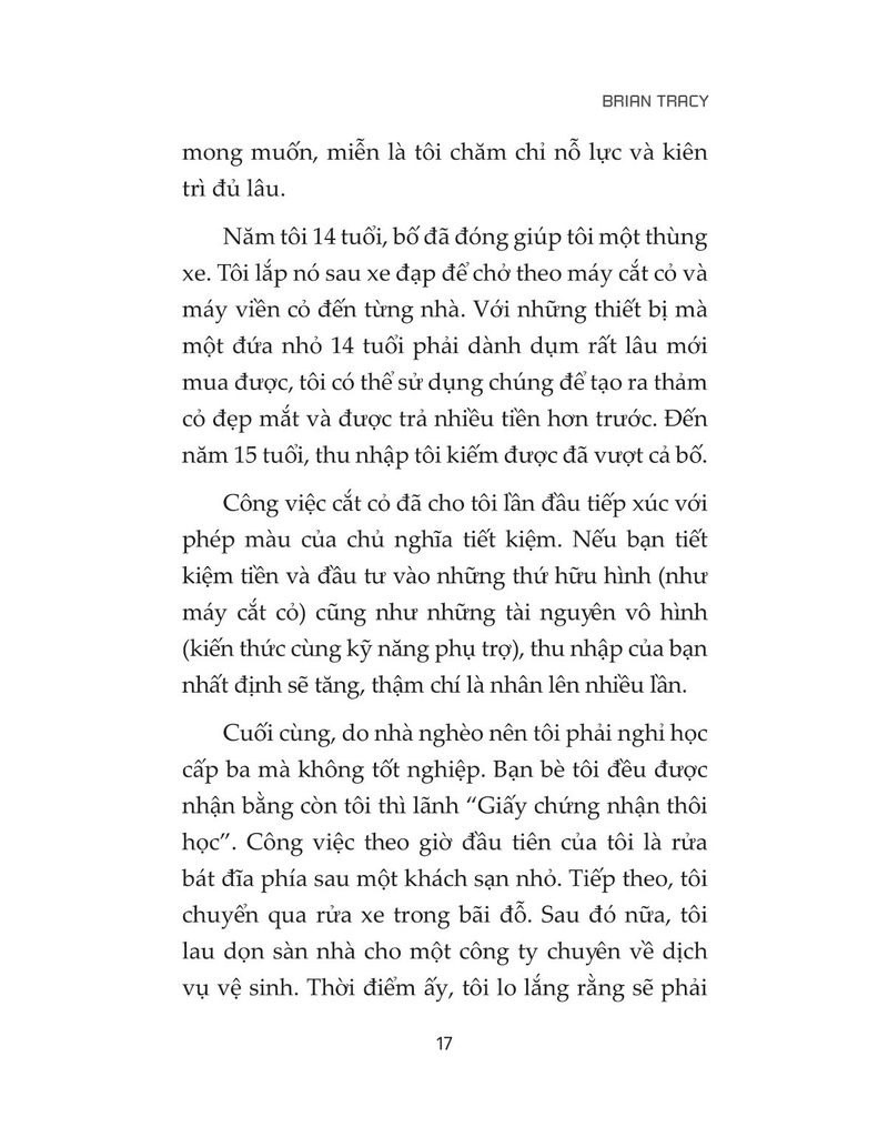 Brian Tracy là một diễn giả, huấn luyện viên, chuyên gia tổ chức hội thảo, tư vấn viên chuyên nghiệp và là chủ tịch của Brian Tracy International - một công ty chuyên về lĩnh vực đào tạo và tư vấn có trụ sở tại Solana Beach, California.