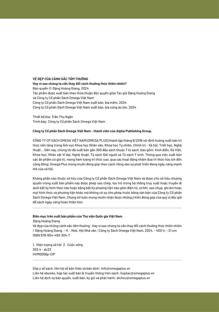 “Vẻ đẹp của cảnh sắc tầm thường - Hay vì sao chúng ta cần thay đổi cách thưởng thức thiên nhiên?” là tác phẩm mới nhất của tác giả Đặng Hoàng Giang. Trong 9 năm qua, tác giả Đặng Hoàng Giang đã viết 5 đầu sách được đón nhận rộng rãi với tổng cộng khoảng một phần tư triệu bản đã được bán ra.