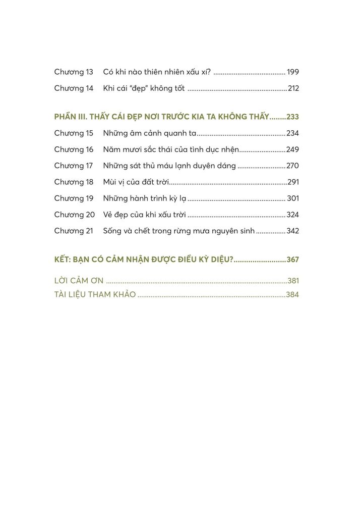 Cuốn sách chứa đựng nhiều quan điểm triết học, khối lượng thông tin tương đối phong phú liên quan đến quan điểm mỹ học, thế giới sinh vật… nhưng được truyền tải một cách khéo léo, dễ tiếp cận qua những cuộc đối thoại, trò chuyện đời thường giữa cặp đôi nhân vật Tò Mò & Suy Ngẫm, giúp khơi gợi ở bạn đọc cách cảm nhận đúng về vẻ đẹp của thiên nhiên: Thiên nhiên đẹp như nó vốn có, không phụ thuộc vào các quy chuẩn đẹp mà chúng ta áp cho con người và khi đã yêu thiên nhiên, một cách tự nhiên, chúng ta sẽ biết cách bảo vệ thiên nhiên.