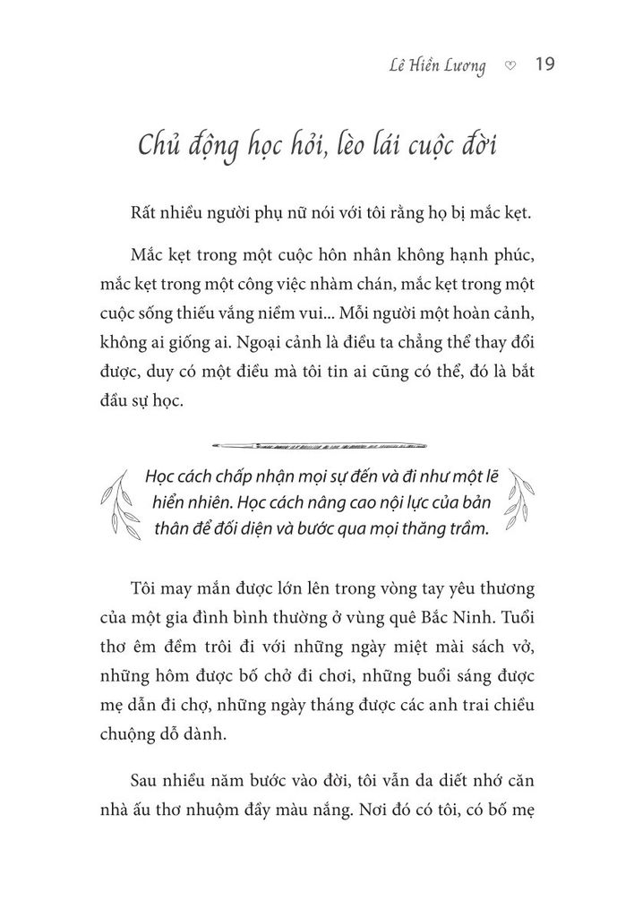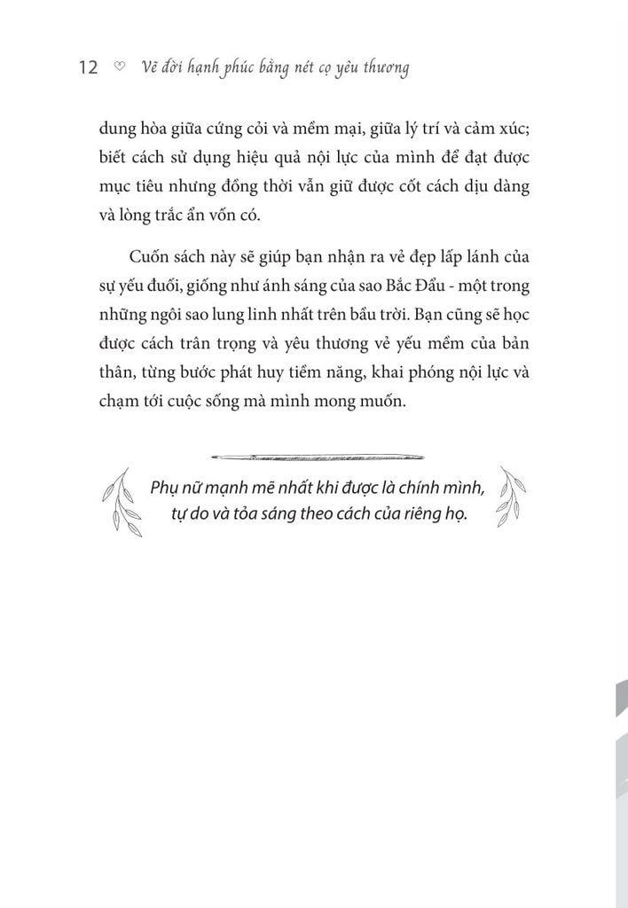 Với ngòi bút đầy cảm xúc và tinh tế, giọng văn khi thì nhỏ nhẹ tâm tình, khi thì điềm tĩnh chiêm nghiệm, tác giả đã vẽ nên bức tranh chân thực về hạnh phúc của một người phụ nữ. Từ đó, giúp bạn đọc nhận ra rằng: Phụ nữ không phải lúc nào cũng là phái yếu, họ mạnh mẽ nhất khi là phụ nữ.