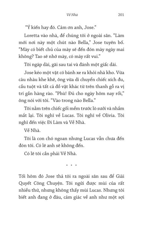 Bella có hình dáng giống một chú chó lai pitbull, được sinh ra trong ngôi nhà hoang, lớn lên cùng bầy mèo và may mắn được một chàng trai tử tế mang về nuôi dưỡng. Nhưng thị trấn này lại có những quy định ngặt nghèo về nuôi chó pitbull, và chủ nhân của Bella phải gởi tạm chú chó của mình đi nơi khác trong lúc sắp xếp một nơi ở mới. Nhưng Bella không thể chờ được, và quyết chí tìm mọi cách trở về với chủ. Cuộc phiêu lưu vào chốn hoang dã, gặp gỡ kết bạn với các sinh vật trong rừng, cũng như lăn lóc sống trên vỉa hè bắt đầu từ đây... Thông minh, tình nghĩa, hết mực trung thành với người nuôi dưỡng mình, chú chó Bella đã kể lại một câu chuyện vô cùng cảm động về người bạn bốn chân đáng yêu này của con người.