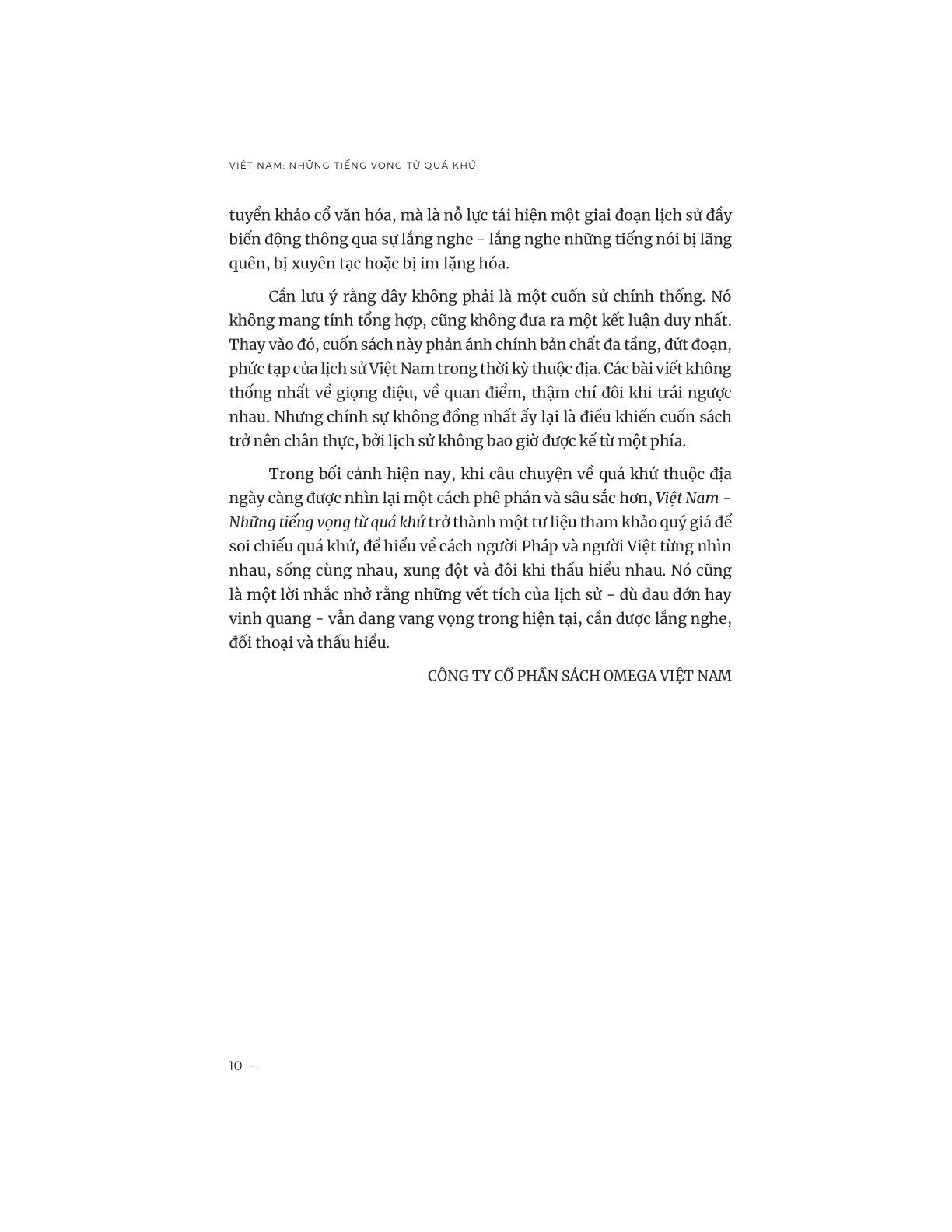 “Việt Nam - Những tiếng vọng từ quá khứ” không phải là một cuốn sử chính thống, mà là nỗ lực khôi phục những ký ức bị lãng quên, những tiếng nói từng bị che mờ trong dòng chảy lịch sử - nhắc ta rằng, lịch sử không bao giờ được kể chỉ từ một phía.