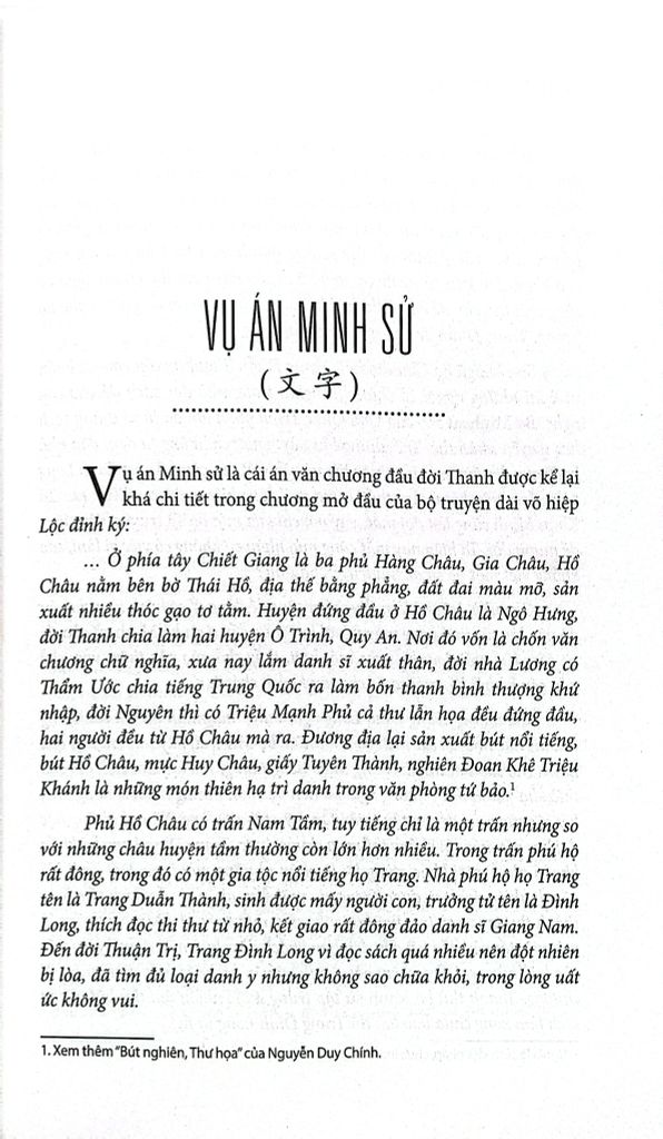 Khởi đi từ những câu truyện dã sử, truyền thuyết, tiểu thuyết lịch sử, nhà nghiên cứu Nguyễn Duy Chính đã khảo sát lại các nguồn tài liệu từ trong sử sách để làm sáng tỏ hoặc đưa ra những góc nhìn xác thực hơn về những câu chuyện được lưu truyền. Vó ngựa và cánh cung điểm lại lịch sử quá trình thuần hóa, cải tiến kỹ thuật sử dụng ngựa và cánh cung, vó ngựa và cánh cung trong cuộc bành trướng của đế chế Mông - Nguyên. Thanh binh nhập quan viết về các cuộc nổi loạn cuối triều Minh, sự thành lập nhà Thanh và thực hư về vai trò của các nhân vật: Lý Tự Thành, Ngô Tam Quế, Trần Viên Viên được phóng tác trong các tiểu thuyết hay dã sử. Từ một đoạn trong Lộc đỉnh ký của Kim Dung, Vụ án Minh sử dựng lại vụ “văn tự ngục” vào đầu đời Thanh.