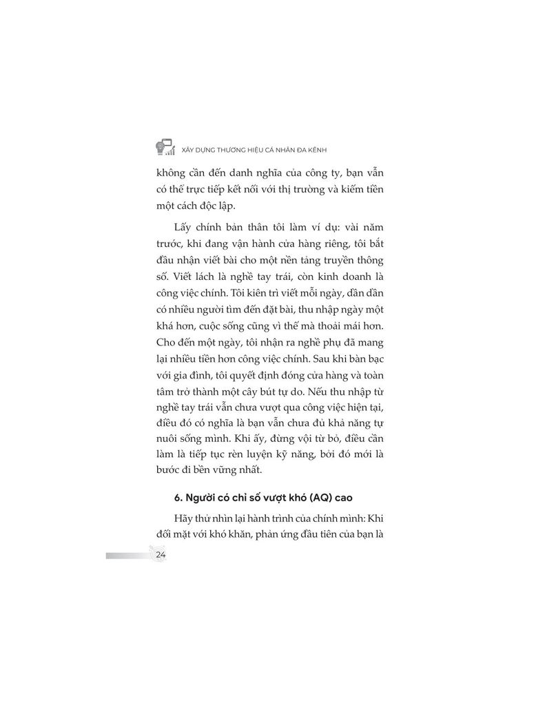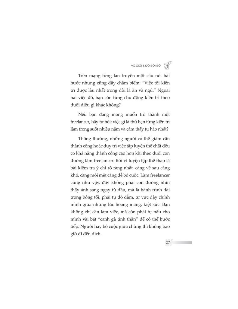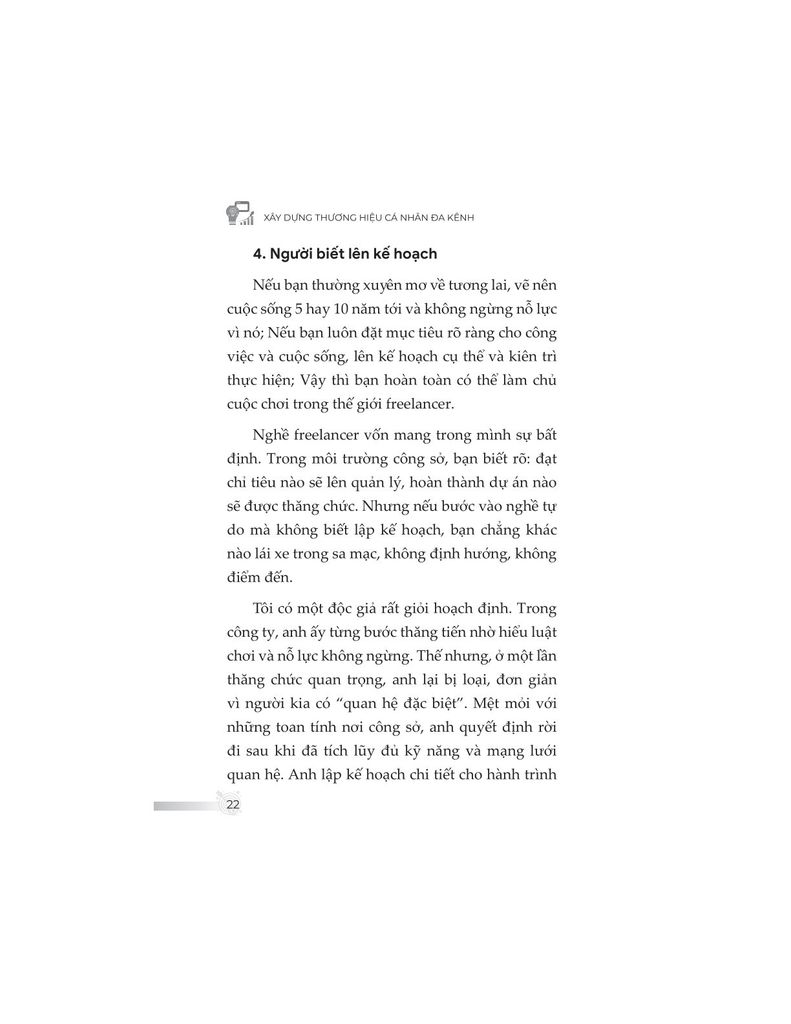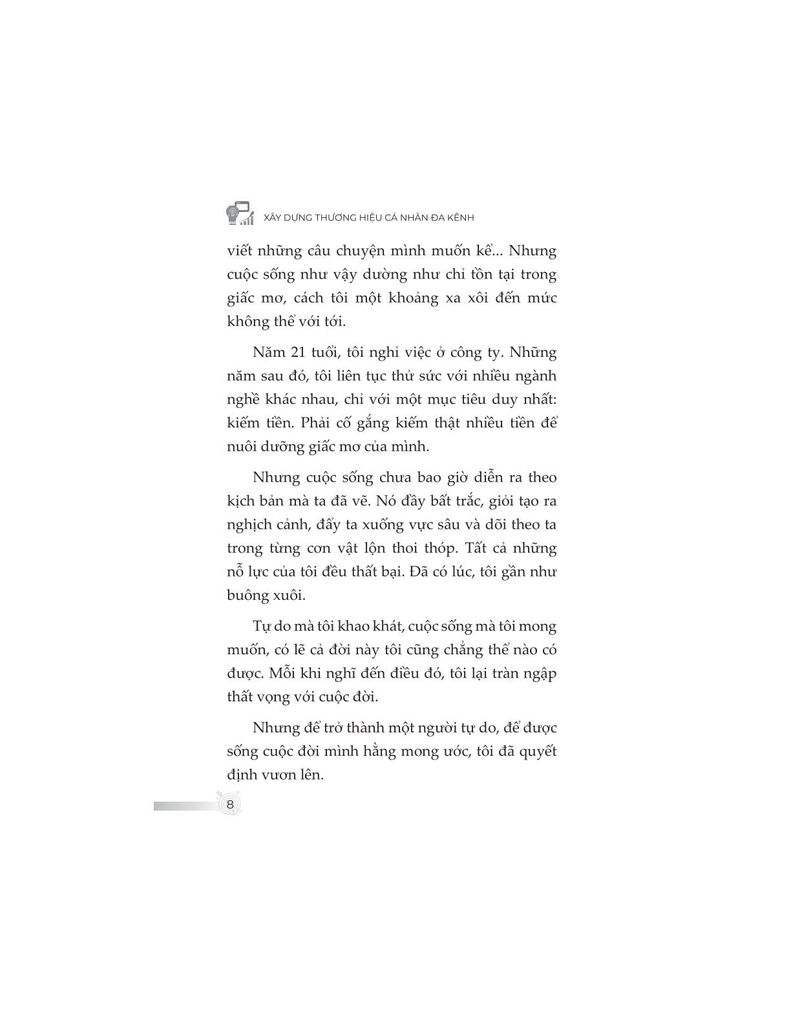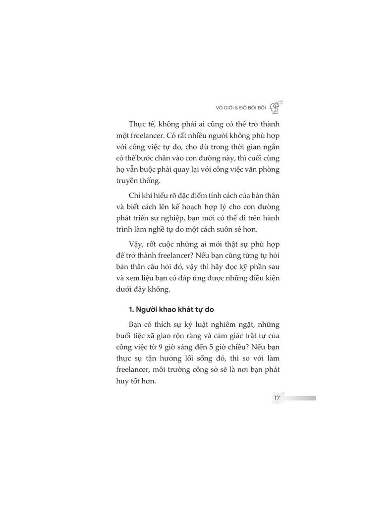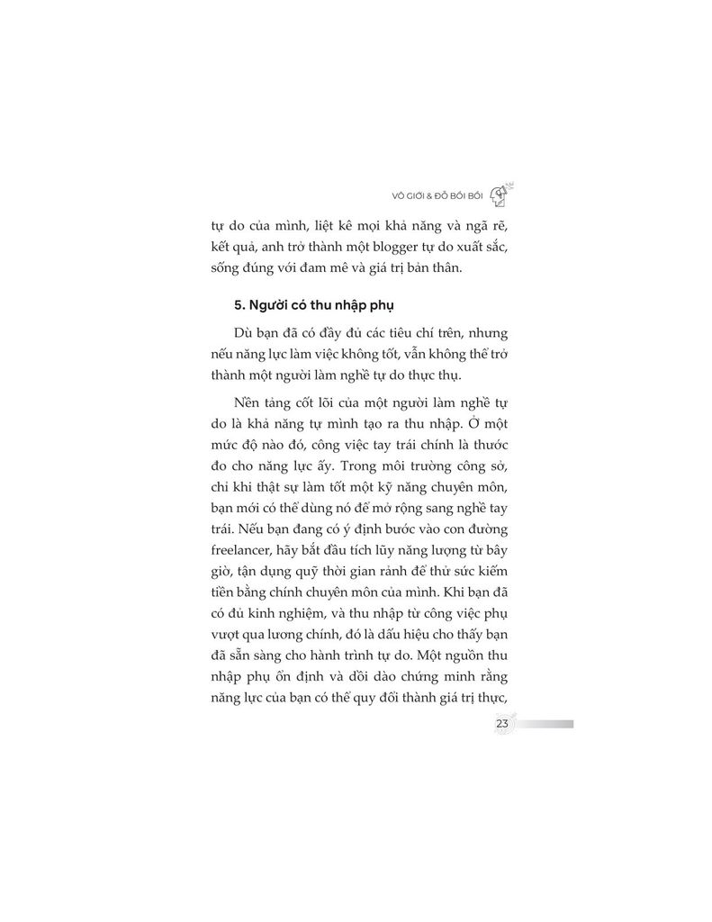 Không đơn thuần trình bày kiến thức khô khan, nội dung sách được đúc kết từ chính hành trình hơn một thập kỷ làm freelancer của tác giả – từ những thất bại chạm đáy, các mô hình thử nghiệm thực tiễn, cho đến những thành quả như trở thành giảng viên, tác giả chuyên mục, người làm nội dung toàn thời gian. Từ đó, độc giả không chỉ học được “làm như thế nào”, mà còn hiểu “tại sao lại làm như vậy”.
